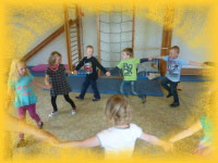 Rhytmik ist eine Methode zur künstlerisch – pädagogischen Bewegungserziehung. Die rhytmisch musikalische Erziehung versteht sich als eine ganzheitliche Arbeitsweise, welche über die Medien Musik, Bewegung und Sprache auf Körper, Seele und Geist wirkt. |
